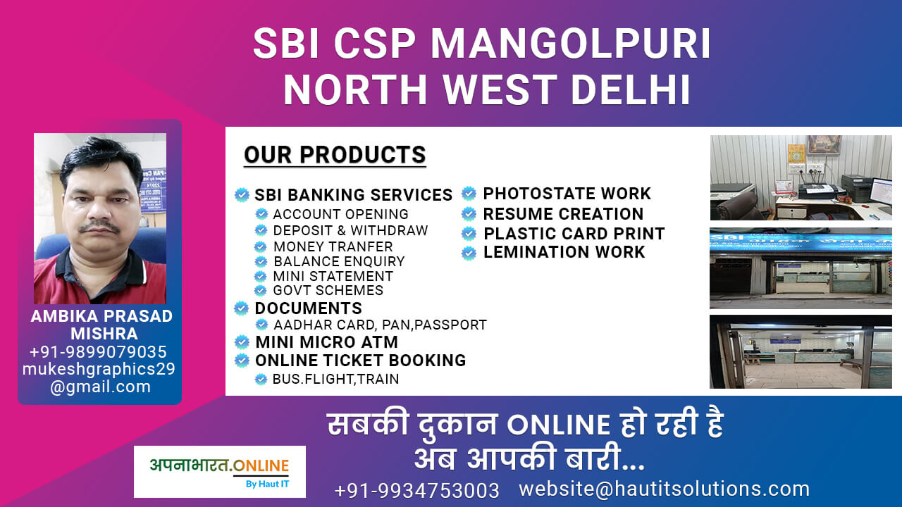 Welcome to Mr. Ambika Prasad Mishra's SBI Customer Service Point (CSP) located in Mangolpuri, North West Delhi. Since opening our doors nearly 3 years ago, we have proudly served our community with dedication and excellence.