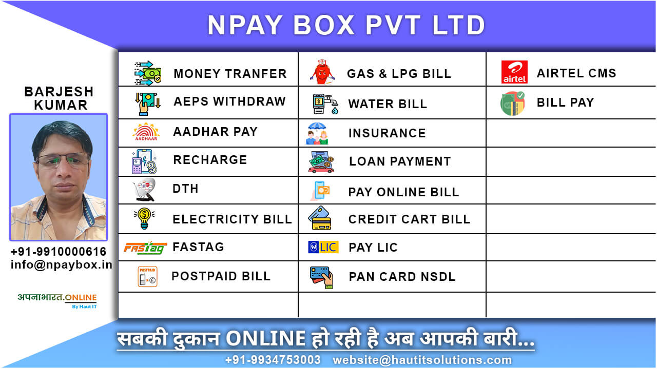 NPAY BOX Pvt Ltd is a multifaceted service provider catering to a diverse range of financial and utility needs.