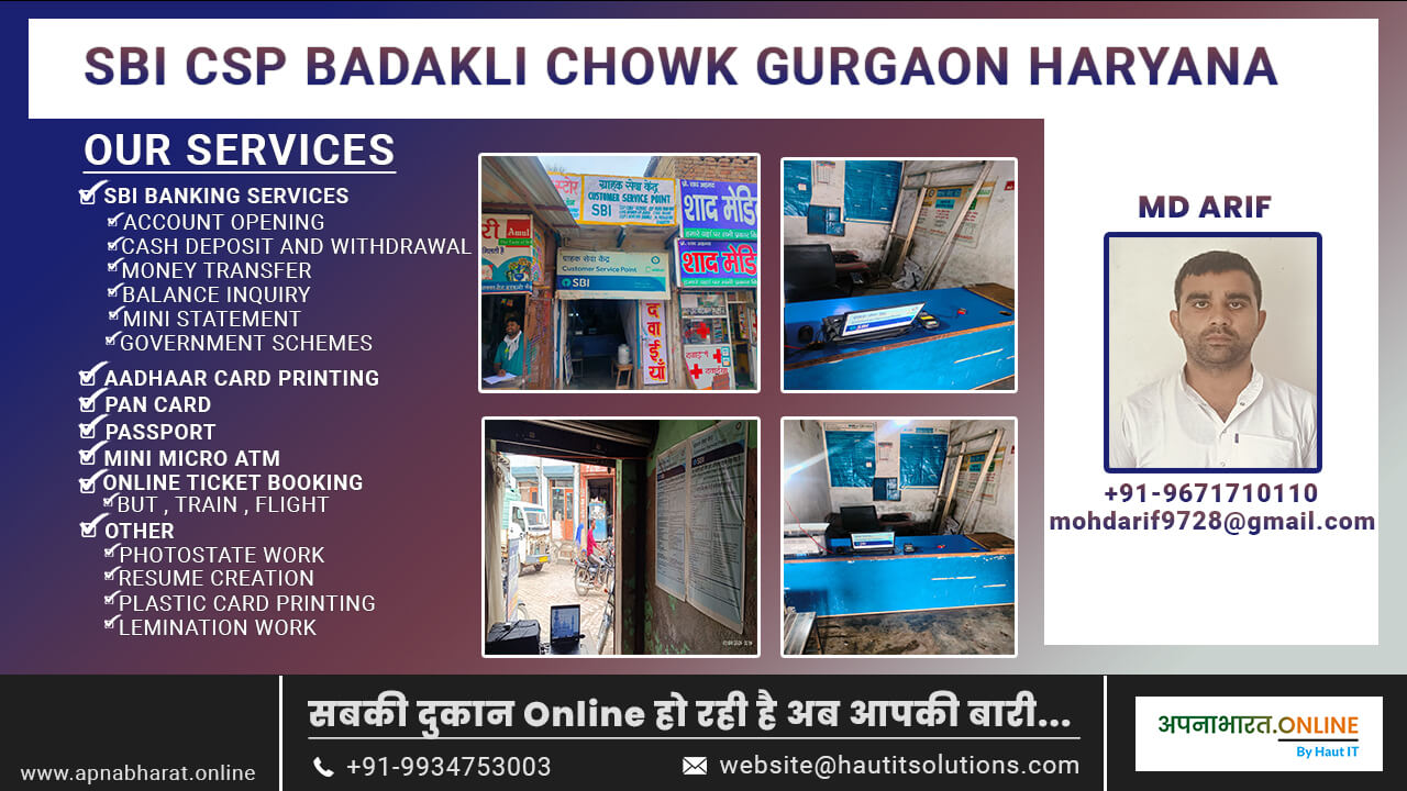 Welcome to our SBI Customer Service Point (CSP) at Badakli Chowk, Gurgaon, Haryana, managed with dedication and excellence by Mr. Mohd Arif. With a rich experience of 9 years in the field, Mr. Arif has built a reputation for providing exceptional banking services and customer support to the local community.