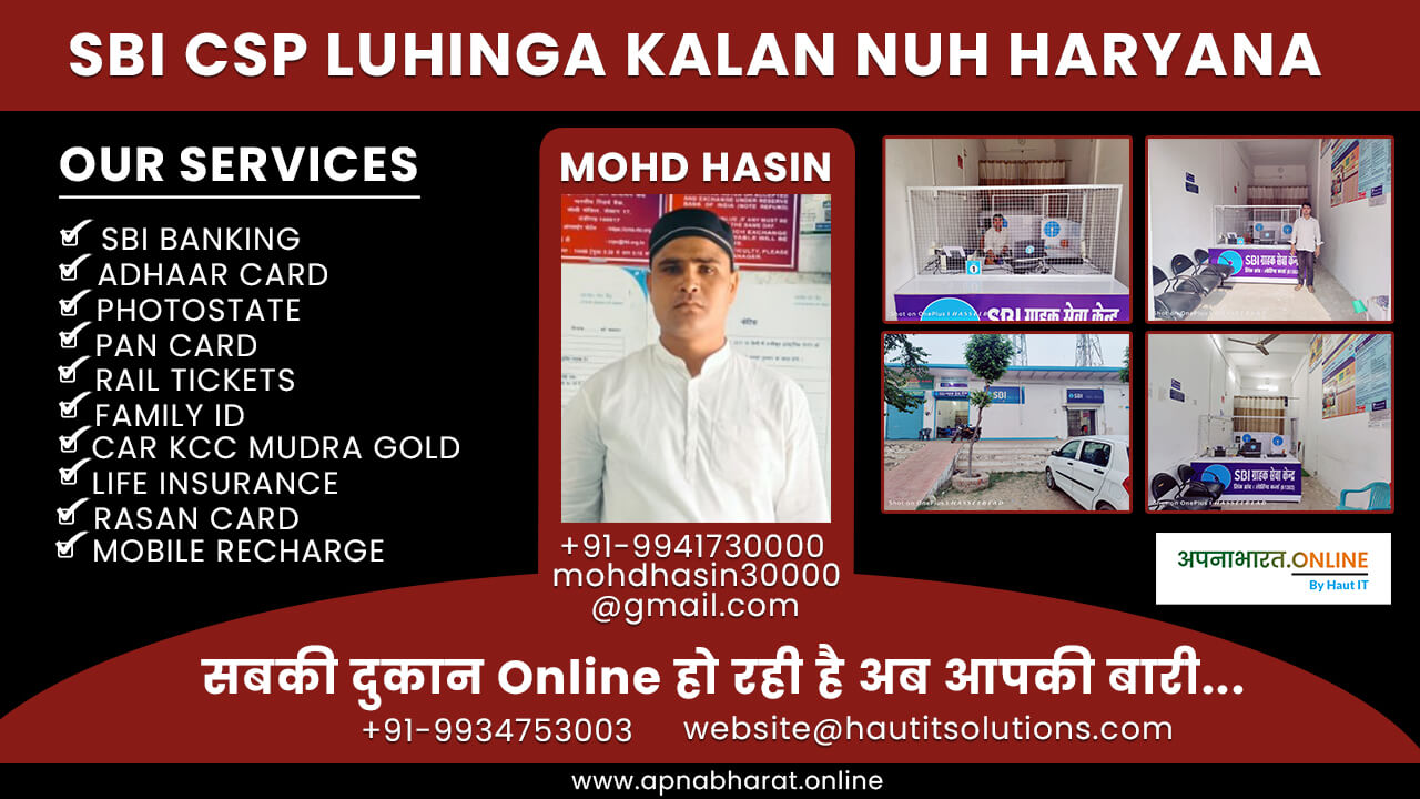 Welcome to Mr. Mohd Hasin SBI Customer Service Point, your trusted partner for all SBI-related services in Sbi Csp Luhinga Kalan Nuh Haryana. Established nearly 3 year ago, our shop has quickly become a cornerstone of reliable and efficient financial solutions in the community.