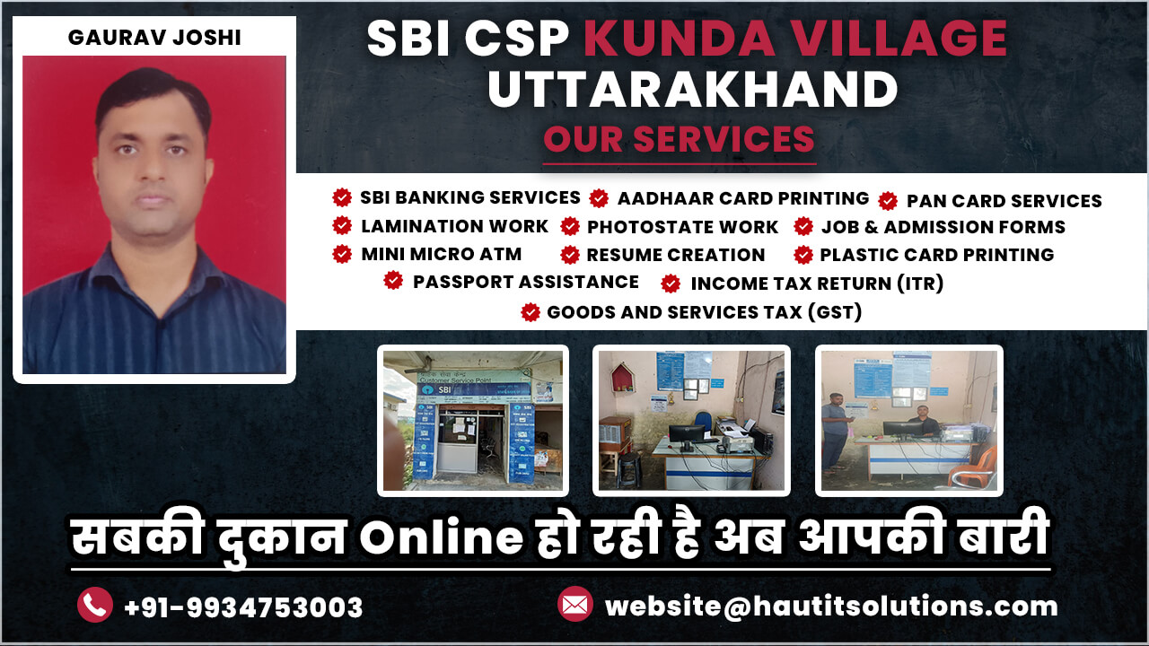 Mr. Gaurav Joshi is a dedicated and experienced SBI CSP (Customer Service Point) operator, serving the community of Kunda Village , Uttarakhand, for the past 8 years. His CSP has become a trusted and essential resource for local residents, providing a wide range of banking services that cater to the financial needs of the area. With a strong commitment to customer service, Gaurav has earned the trust and loyalty of his clients through consistent, reliable service and a deep understanding of their banking requirements.