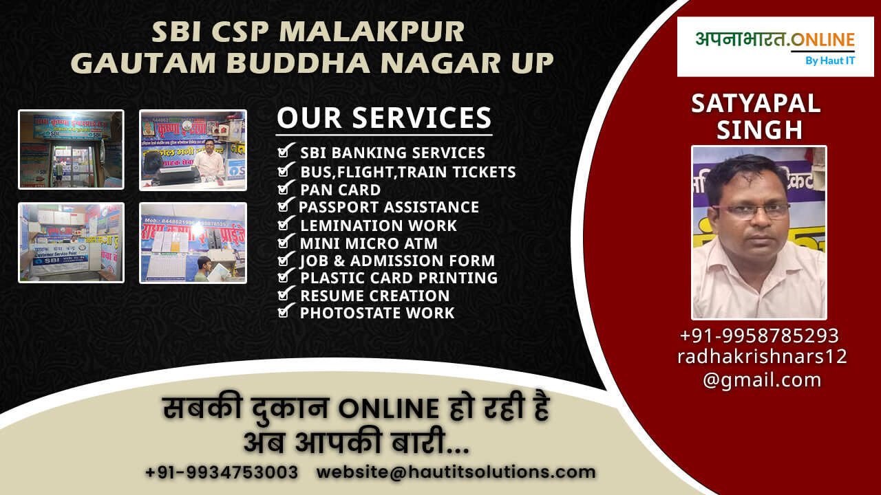 Mr. Satyapal Singh's SBI Customer Service Point (CSP), located in the bustling area of Gautam Buddha Nagar, Uttar Pradesh, has been a beacon of trust and reliability in the community for the past two years. Our journey began with a simple yet powerful vision: to make banking accessible to every individual in our locality, no matter how remote their location. Over these two years, we have steadily grown, becoming a vital part of the community by providing essential banking services that bridge the gap between traditional banking institutions and the underserved population.