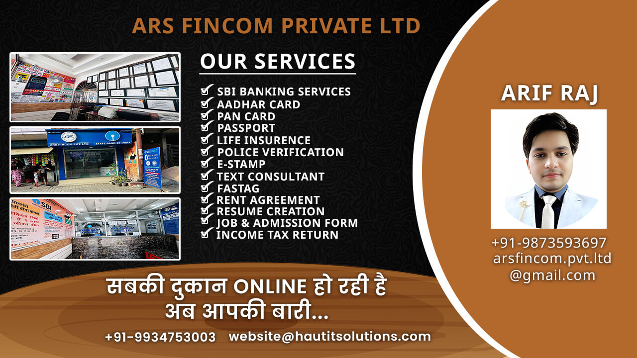 At ARS FINCOM PRIVATE LTD, we take pride in offering a comprehensive range of financial services designed to meet the diverse needs of our clients. Founded by Mr. Arif Raj, our shop has been a trusted name in the community for the past 5 years, specializing in SBI Customer Service Point (CSP), LIC Insurance, PPC (Professional Practice Consultancy), tax consulting, and Income Tax Return (ITR) services.