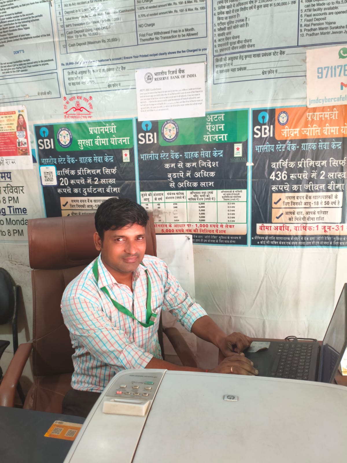 I am Chintu Sharma, a dedicated and experienced entrepreneur providing essential banking and digital citizen services through my SBI Customer Service Point (CSP) and Common Service Center (CSC). Since 2017, I have been serving the people of Budh Vihar, Vijay Nagar, and surrounding areas of Ghaziabad, Uttar Pradesh, with honesty, integrity, and commitment to customer satisfaction.