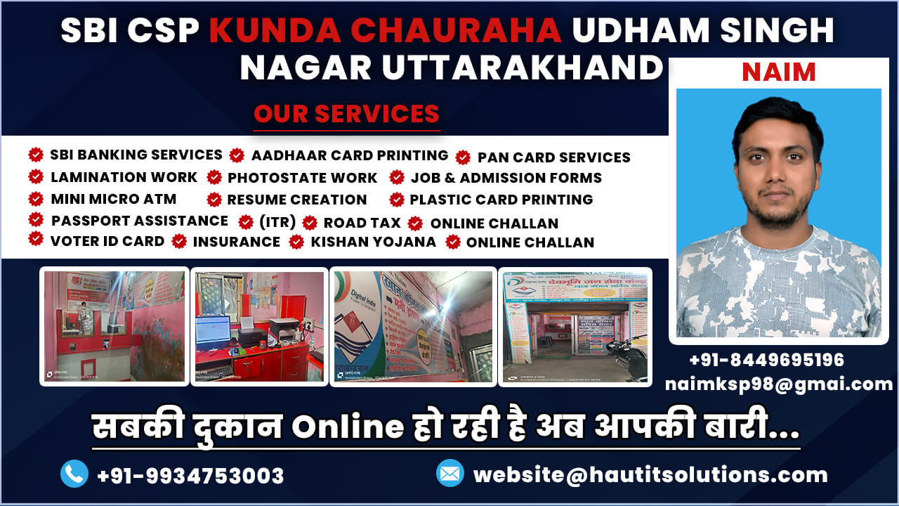 Mr. Naim has been successfully operating an SBI Customer Service Point (CSP) in Kunda Chauraha Udham Singh Nagar, Uttarakhand, for the past four years. His CSP serves as a vital banking hub for the local community, providing accessible and reliable financial services. Mr. Naim is committed to fostering financial inclusion in his region by ensuring that even the most remote areas have access to essential banking services.